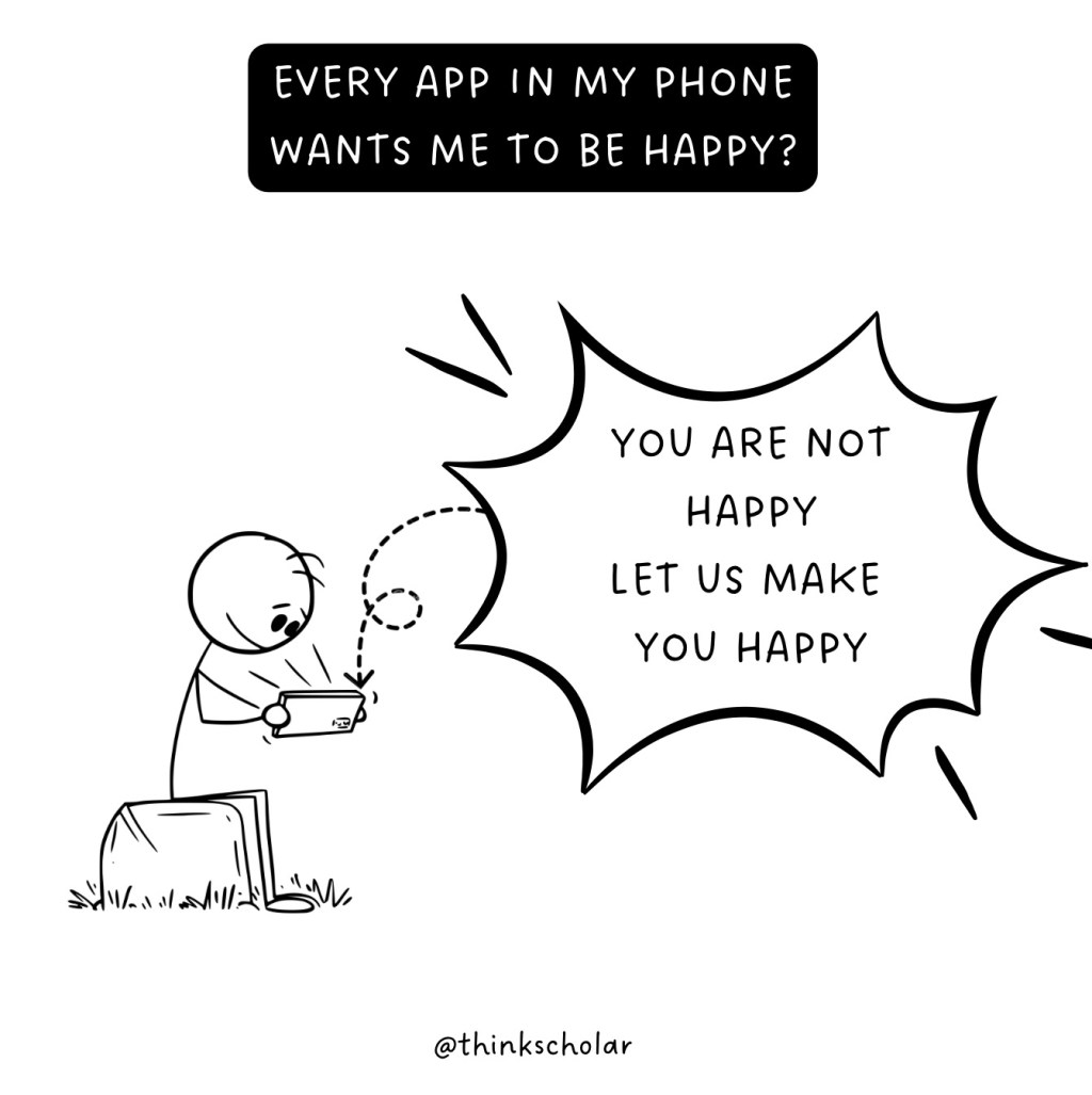 I am so blessed to be alive in these times, where every app on my mobile is taking care of my happiness.