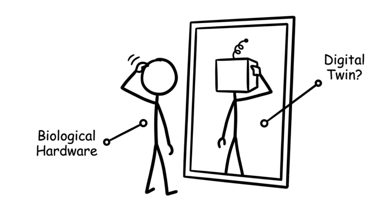 Light hits your eyes. Sound hits your ears. A storm of signals erupts, and somewhere in that chaos you appear and say “this is me.” But what if that feeling of self is just a story your pattern machine tells—after the fact?