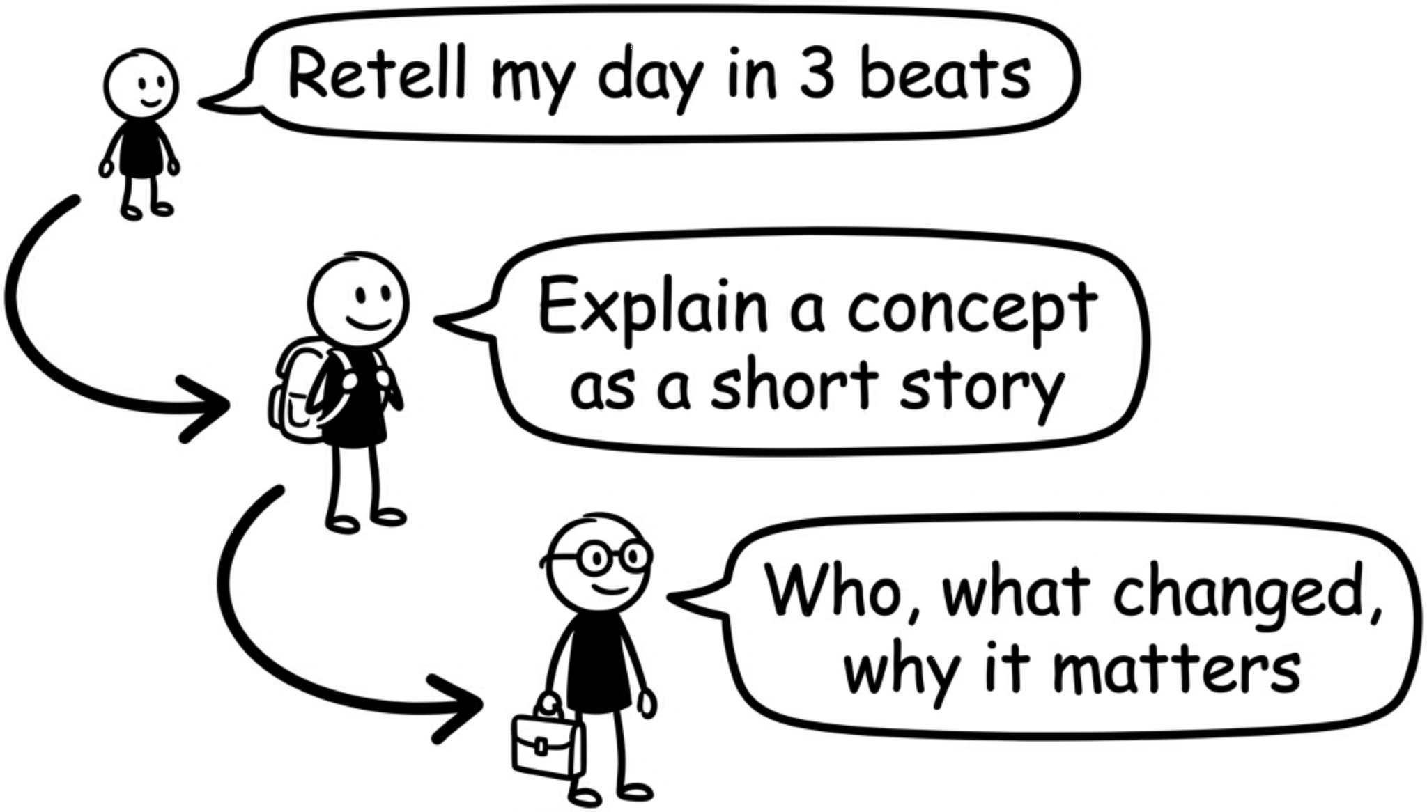 Ask your kids, to retell their day in three beats.
