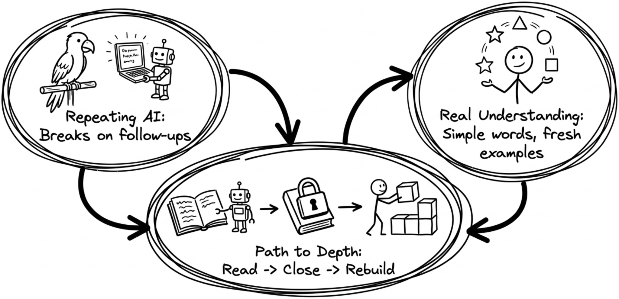 Path to depth: read with AI, then close it and rebuild explanation yourself